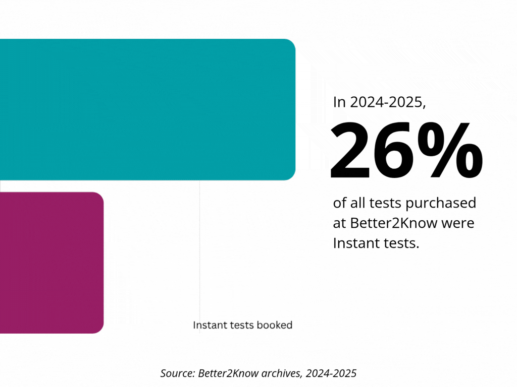 There’s also a huge appetite for rapid answers. Instant tests—particularly instant HIV, instant Chlamydia and Gonorrhoea, and instant multi‑infection screens—over the course of 2024 and 2025 made up around 25.7% of all tests booked. Same‑day reassurance is clearly becoming the norm, especially for individuals worried that their flu‑like symptoms might be connected to recent risk.